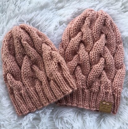 The Cable Me Crazy Beanie is perfect for you and your mini me! This hat is made with worsted weight yarn and is worked in the round from the bottom up. It features a fitted brim, squishy knit cables and has a slight slouch. Download includes both sizes.