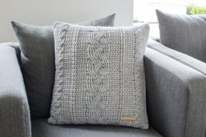 The pattern is for making a cable pillow of approx. 40 x 40 cm (16" x 16") but the pattern includes also instructions how to make the pillow smaller or larger. The pattern also includes instructions how you can make a pillow cover where the inner pillow can be easily removed.