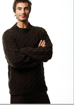 A handsome diamond cable with ribbed crew neck and bands worked with Classic DK Wool yarn.