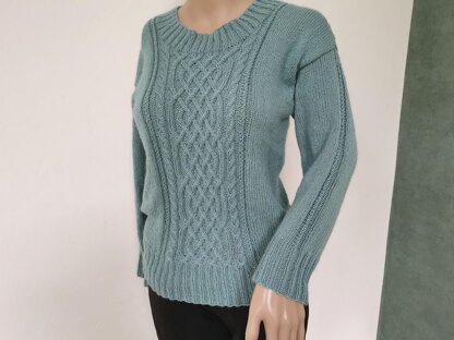 Sweater Brenda is beautiful piece of clothing with a beautiful Celtic braid cable on the front and the back. I have knitted this sweater with Lana Grossa Ecopuno.