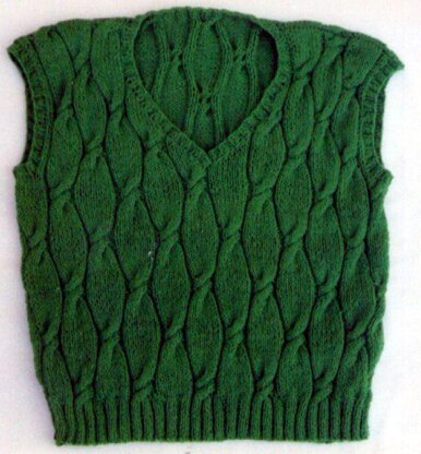 A good pattern for cable lovers.. The cables do a double twist, to make for a unique style! Men and women like this style very much. It is very comfortable to wear, using sport weight yarn. Sizes from 38 to 44 and is stretchy for ease in wearing. Lightweight, yet nice and warm! Uses knitting needles, US # 6 and # 8.