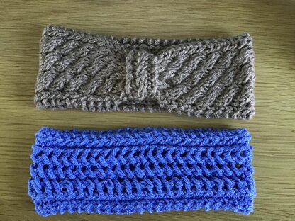 These designs are a good way to practice cabling and making eyelets, and if you’re already familiar with those techniques you can use the patterns to make quick handmade gifts. Each band is approx. 8cm (3.5”) wide.