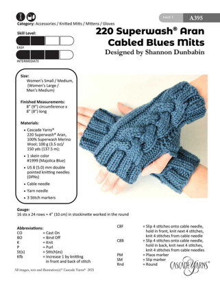 Cabled Blues Mitts in Cascade Yarns 220 Superwash Aran - A395 - Downloadable PDF is a free Intermediate Knitting pattern by Shannon Dunbabin, available as a Downloadable PDF and includes instructions in English. Super fun to make, this pattern could be your next masterpiece!