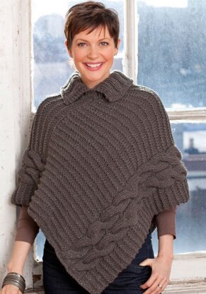 Cabled & Collared Poncho in Red Heart Shimmer Solids - LW2973
