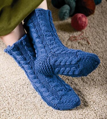 These socks are knit toe up, garter-st short-row heels with an all-over cabled rib pattern that is easy to remember and so these socks just fly off the needles.
