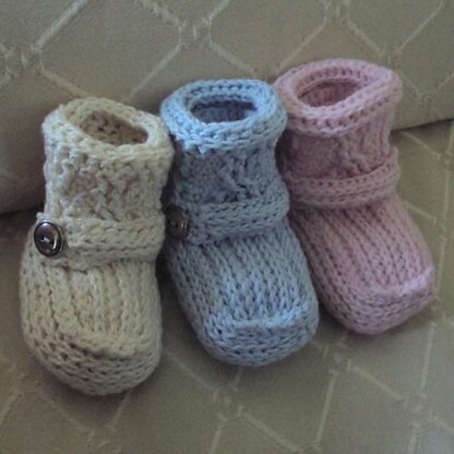 Crochet these gorgeous knit-look baby booties for you baby boy or girl! This is a great style for either gender.