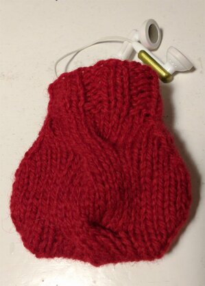 Knit in DK yarn on 4 mm needles (US 6) this is a very quick knit. It makes a useful cozy for those irritating earphones which lie around and get tangled with other things.