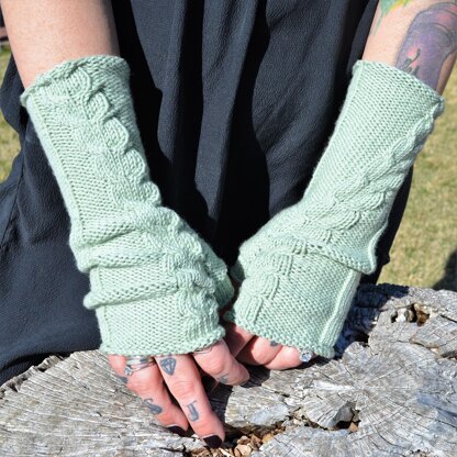 Cabled Fingerless Gloves were originally designed for my niece, Faith. Faith requested a pair of cabled fingerless gloves to be worked up in just one color and have a simple basic cable. She wanted the cable offset; “Looks like they are twisting around the front of my hand.”After seeing the gloves on Faith, her cousin, Emily, requested a pair knit up in pink. Emily’s gloves needed to be a bit smaller than Faith’s so I rewrote the pattern to include a smaller size as well. Once again, I remain the favorite aunt!