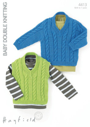 Cabled Jumper and Waistcoat in Hayfield Baby DK - 4413