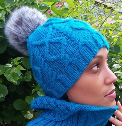 This hat is a quick and easy knit with cabled columns supporting a pendant like motif. There is a swirled crown for interest, which can be done in alternate ways. The simple 16 stitch motif repeat allows you to size this from Small to Large easily with repeats of the motif.