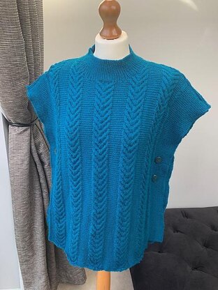 This cosy poncho is oversized yet feels snuggly as it has side button fastenings.
