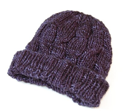 My friend is always looking for a sweet little hat that will work beautifully for all her wonderful handspun yarn! This one did the trick...a warm hat that has a bit of cabling and highlights the complex variations of handspun yarn.