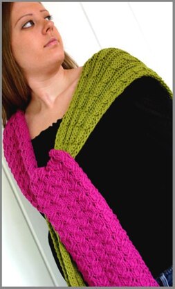 Two easy, cabled scarves — no cable needles required — knit up quickly in 400 yds. of soft bulky weight yarn, or scale to other yarn weights (worsted, heavy worsted aran). Both versions sport neat rolled edges. Pattern can be ordered from your favorite retailer or Jimmy Beans Wool, or downloaded from Patternfish.