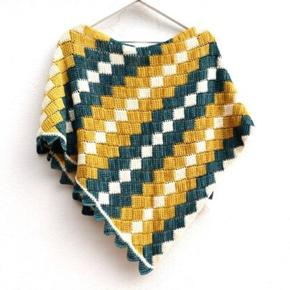 Cabo Verde is an asymmetric triangular shawl worked in the Tunisian crochet entrelac technique. Each element of the shawl is small enough to place all of your stitches on a regular crochet hook.