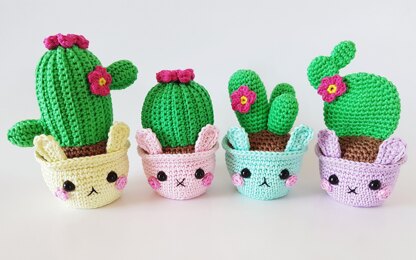This is a pattern for 4 cactuses in a kawaii bunny pot These cactuses looks super cute as decoration! And the best thing is that they doesn't need any water and the pot will never break!