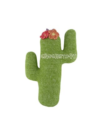 The cactus is crocheted with hook size 3 mm and matching yarn. For the cactus you will need 100 g, for the flowers some leftover yarn.