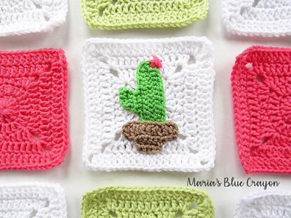 The cactus granny square pattern includes the cactus applique that can be made alone or made to be sewn onto a granny square (pattern also included).