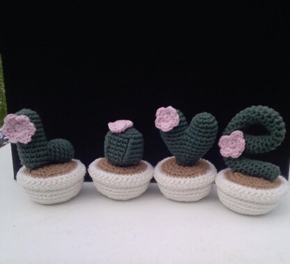 The cactus of love is made by crocheting in the round. The pot is no sew, but everything else has to be sewn together.