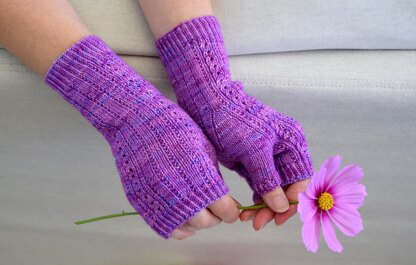 The mitts are worked in the round from the wrist to the fingers.