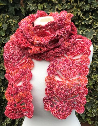 The edging on the scarf is worked as you go, so you can use up the last of your yarn before fastening off.