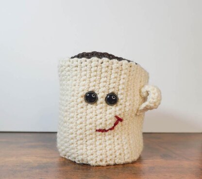 This adorable crochet coffee cup pattern is guaranteed to put a smile on any coffee lover’s face! At just under 4” (10 cm) tall, it’s perfect for storing small crafts supplies, like buttons, safety eyes, and more. Or use it to keep mementos like movie tickets, USBs, or any other small items that resists organization. Or, stuff it and make it a squishable softie!