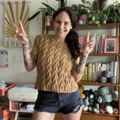Caffeine Queen is a striking short-sleeve pullover that is fun to knit and impressive to show off! The cable and texture pattern featured in Norah Gaughan’s Cable Sourcebook is reminiscent of coffee beans. The boxy fit and simple drop-shoulder construction make for a sweater that is simple to knit and cozy to wear. Knit up in Fantastic Farm’s Domestic yarn base, a lovely naturally dyed farm yarn, Caffeine Queen is the perfect sweater for coffee lovers!
