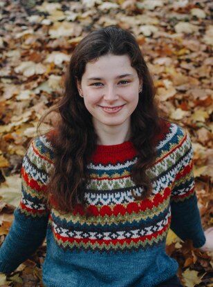 Caitria is a top-down seamless yoke sweater that is knit in the round. There is a ribbed neckline followed by short rows at the back of the neck for a comfortable fit. The yoke features contemporary stranded colourwork. There is optional waist and hip shaping to add feminine shape, and the hem and wrist cuffs are finished off with ribbing. The pattern includes a colourwork chart as well as a symbol chart, for you to play around with your own colours.