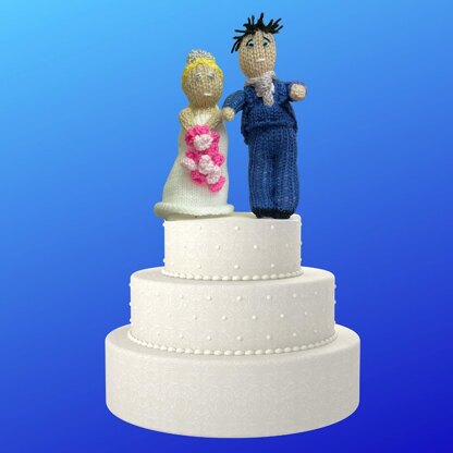 Features groom (8.5" tall) wearing three piece suit, shirt and cravat and his bride (7.5" tall) wearing strapless gown, veil and tiara. Finishes touches include bouquet.