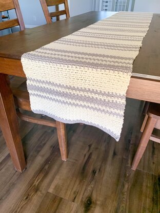 Let this customizable crochet piece stand as a new focal point of your family table. Gather around as you share meals, celebrate special moments and learn together. This modern style table runner is versatile and timeless. It makes for a gracious wedding, housewarming, Christmas or anniversary gift. The pattern includes instructions on how to customize the length and width to fit your desired table dimensions and a user-friendly graph of the stripe pattern.