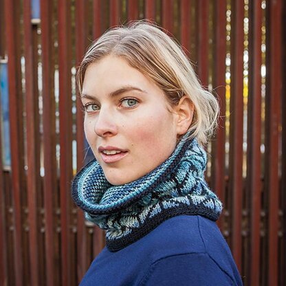 Chroma’s shifting waves of color seem to bend and weave across the chevron designs of this double-thick stranded cowl. Warm and soft and visually striking, the lined construction gives two double-thick layers of colorwork coziness.