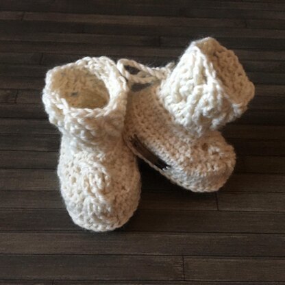 CALEB CROCHET BABY BOOTIES CROCHET PATTERN PDF - Cute cabled baby shoes | slippers in 4 sizes from Prem to 1 year by changing hook size. Made seamless all in one from bottom up so no sewing of side seams. Gender neutral - Baby boy or baby girl. Great DIY baby gift.