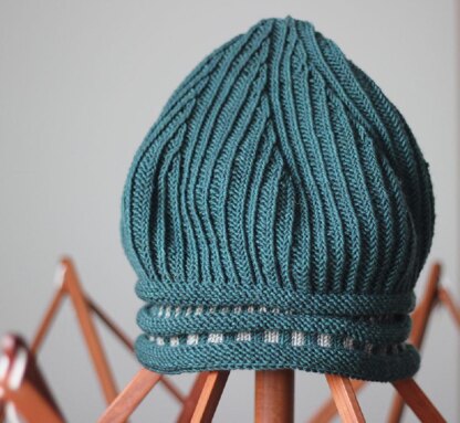 Callisto Hat is a squishy, entirely reversible hat worked in a twisted rib and with just a touch of colourwork.