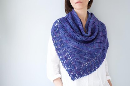 Finished measurements: Shawl size is customizable; yarn amount will vary. Pattern includes instructions on how to customize the size. SizeI — 60” / 152.5cm wingspan, 25” / 63.5cm deep; SizeII — 75½” / 192cm wingspan, 31½” / 80cm deep.
