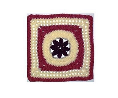 This 12X12 square features a lovely flower center and is great for use in afghans, lapghans or square swaps. Use any combinations of worsted weight yarn to achieve your own unique look.