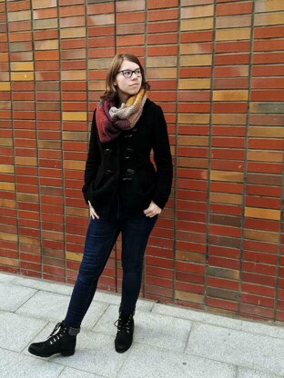 This scarf was inspired by the ever sudden arrival of autumn in September and October as the new term starts. When the ankle boots and beanies and big coats make an appearance, it is the perfect time to whip up a cozy new scarf! This subtly textured scarf can be worn in several ways due to being longer than the average infinity scarf, so you can wrap it up to three times to really keep out the cold.