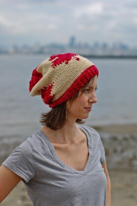 This rustic Canadian Slouchy Toque is a great knitting project for any advanced beginner! With traditional Candian colours and suggested yarn from Fleece Artist dyed and spun in Nova Scotia this hat is simply Canadian!