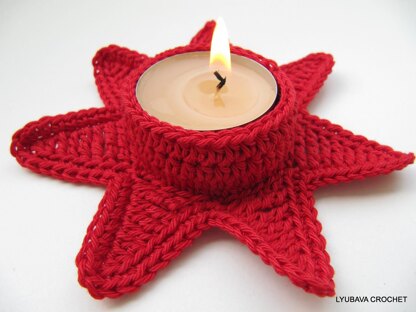 Crochet Candle Holder "Christmas Red Star" crochet pattern PDF with detailed step-by-step easy to follow instructions written in English, in American crochet terms, with a lot of photos for your convenience.