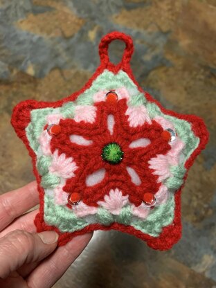 Great stash buster project! 2 granny style motifs - stitched together and stuffed with poly fill