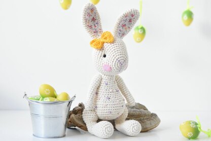 Candy bunny will delight kids with her sweet look and yummy candy like dots covering her body. You will only need single crochet for making the pieces, but be prepared for experienced sewing techniques and some basic knowledge of stitching.