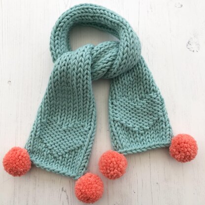 This beginner friendly pattern includes both patterns for kids and adults sizes. I chose to use Paintbox Yarns Wool Mix Super Chunky yarn in washed teal and bright peach. You could substitute this for any 14 ply yarn. The design can be worn right side or wrong side and finished with optional pom poms.