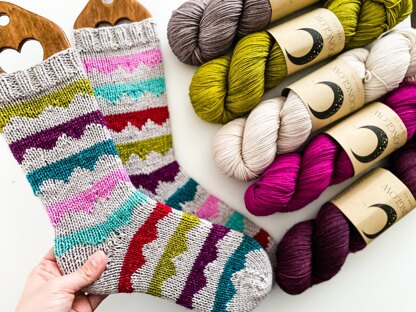 Candy Mountain is one of my favourite patterns I've designed and I've been wanting to make a version with heavier weight of yarn. I'm so happy to introduce you to Candy Mountain Double Stranded!! Don't want to knit fingering weight double stranded? No worries try some DK or Worsted yarn instead. Just make sure to check your gauge.