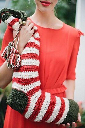 This oversized sock in Christmas colours makes the perfect project for the festive season. Use a larger hook & yarn for a bigger size or a smaller hook & yarn for a smaller size! Simply fill with gifts when ready & hang up on the mantlepiece!