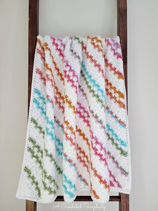 The Candy Stripes Lapghan is crocheted on the bias (also known as C2C or corner to corner crochet). I love to crochet C2C blankets for a couple reasons. They seem to work up more quickly than blankets crocheted in horizontal rows or in rounds. You can easily increase the width and length of your blanket as you’re crocheting it.