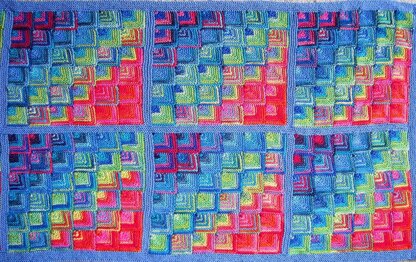 Made up of blocks of 36 small mitred squares (36 bock square measures 12" x 12" ) with knitted on border.