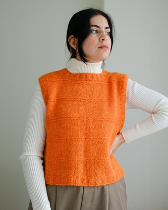 The pdf includes all the steps for knitting your own vest, with instructions for 9 sizes.