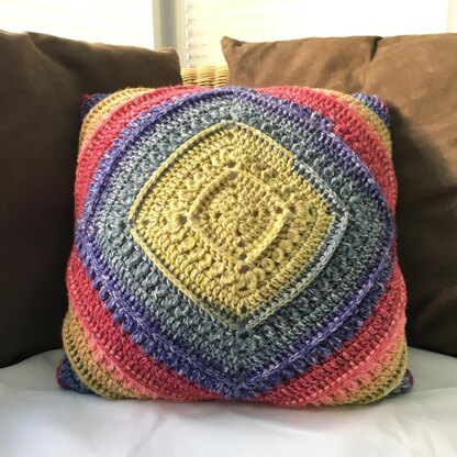 I love the cake style yarn balls currently available. This design is a square using a single full cake in a repeating pattern.