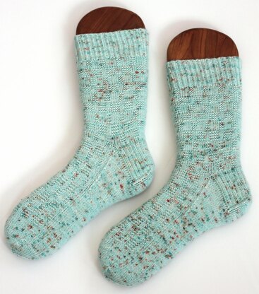 The Cape Cod Socks pattern is an easy textured cuff-down design that features a half-twisted ribbed cuff, traditional heel flap and gusset with Dutch heel turn, and a spiral toe that does not require grafting. The pattern comes in five sizes from Child to Adult XL. Both written instructions and charts are included. The basketweave texture is easy to memorize and engaging to work. Use your favorite variegated or speckled yarn for a fun alternative to vanilla socks. This pattern was tech edited by Laura Cameron.