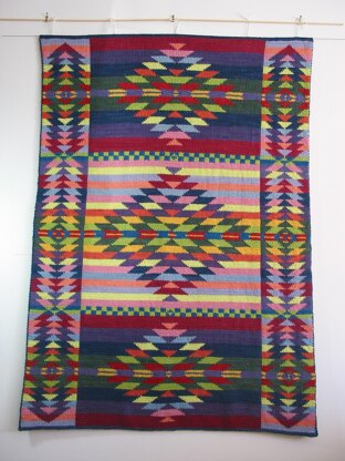The ultimate comforter! Delectably cozy and, through the use of a basic two-colour-per-row double-knitting technique, absolutely beautiful on both sides. Although this is a large project, once the colour pattern is established, it cruises along quite speedily without the need to constantly refer to the chart. Size: 96 x 137 cms / 38 x 54 inches. Yarn: Shelridge Farm W4 (machine-washable merino, worsted weight) in 15 colours. Techniques: Stocking stitch double-knitting with negative/positive patterning, optional tubular cast-on and bind-off (directions are given in detail). Level:Determined Intermediate / Advanced