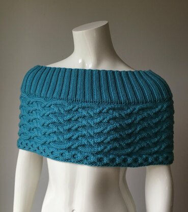 Charlie is a beautiful capelet, decorated allover with cables.