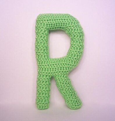 This letter R is approximately 8.5 inches tall and 5 inches wide. This item is crocheted and then stuffed with polyfill stuffing.